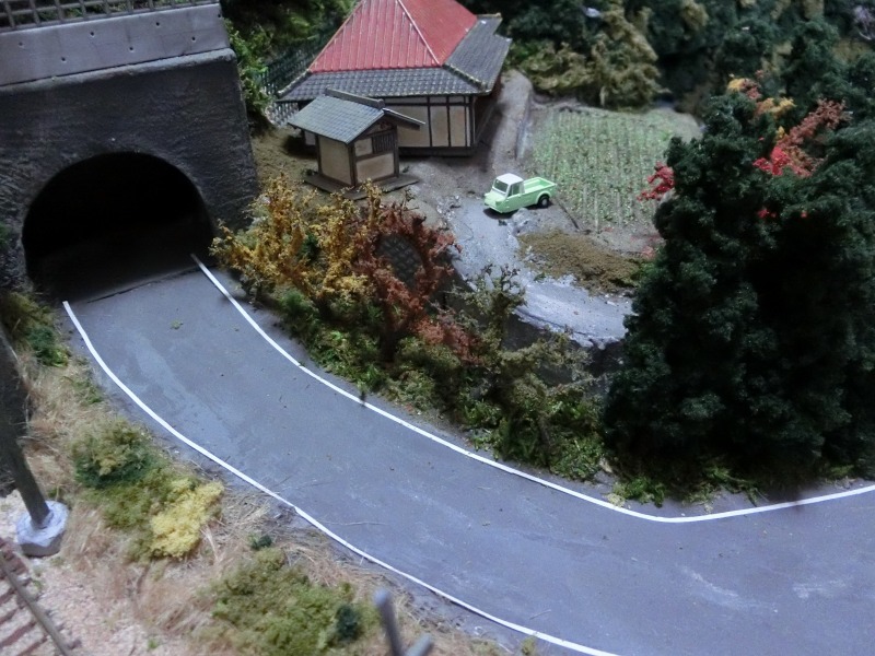 トンネルの上の落石防護柵は、すっかり忘れていたので慌てて取り付けましたw 上はプラ棒とTOMIXのワイドレール用の柵から作った自作品。下はGMのものをそのままつけています。
