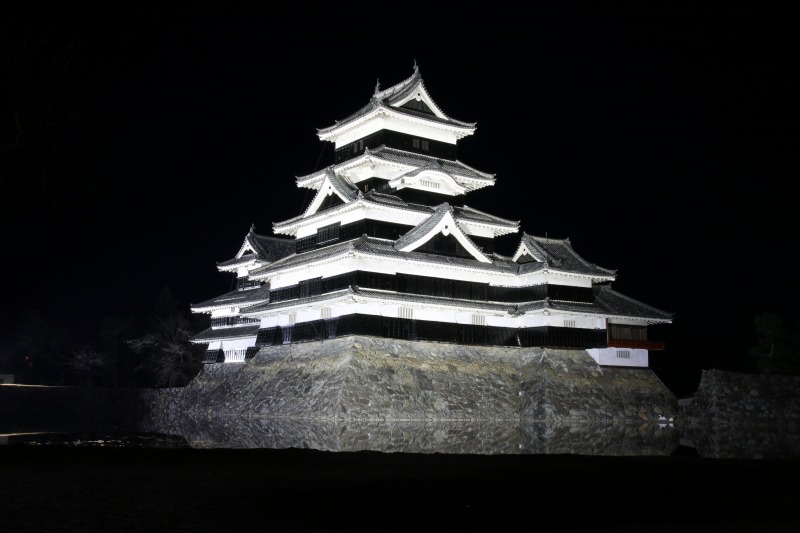 そんなこんなで松本に到着。宿に荷物を預けてカメラ担いで出かけます。で、到着、したのはいいんですが、夜景には三脚と一眼レフでの撮影は不可欠ですが、その三脚の取り付け金具をサブカメラにくっつけっぱなしにして、宿に置きっぱなしにしてしまいました。もう1回宿に戻って無駄足です。