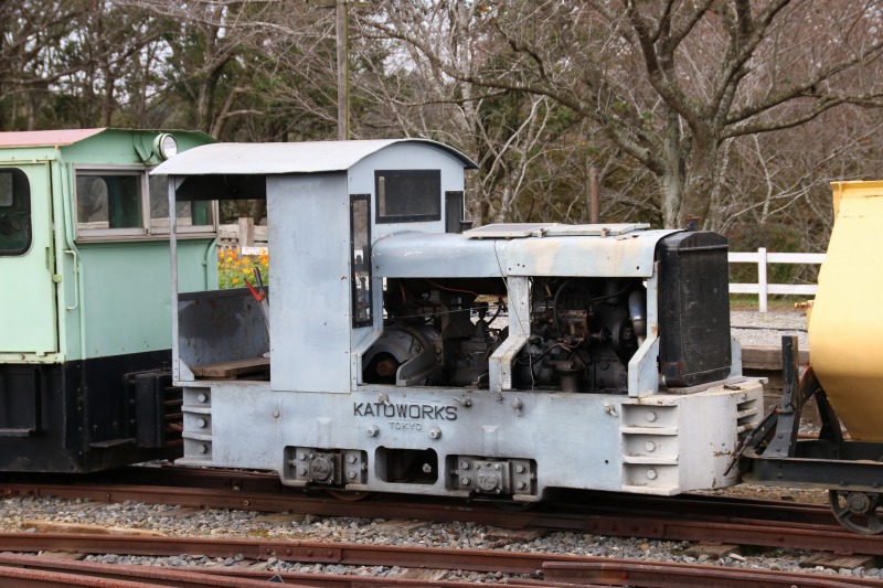 3両ある酒井工作所製のディーゼル機(101~103号のいずれかです)、立山砂防軌道で使われていたもので、普段はこの機関車が園内を走行しますが、この日の主役は蒸気機関車で、今日はお休みです。