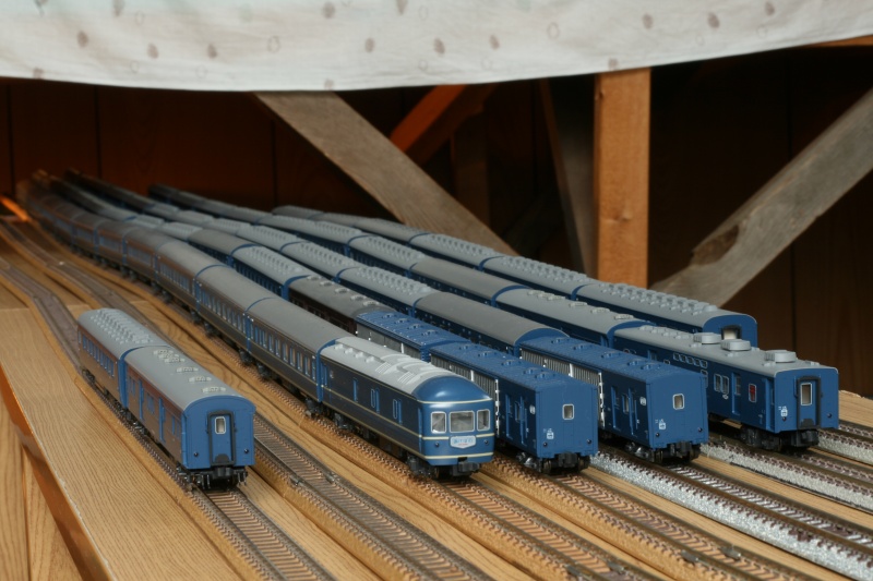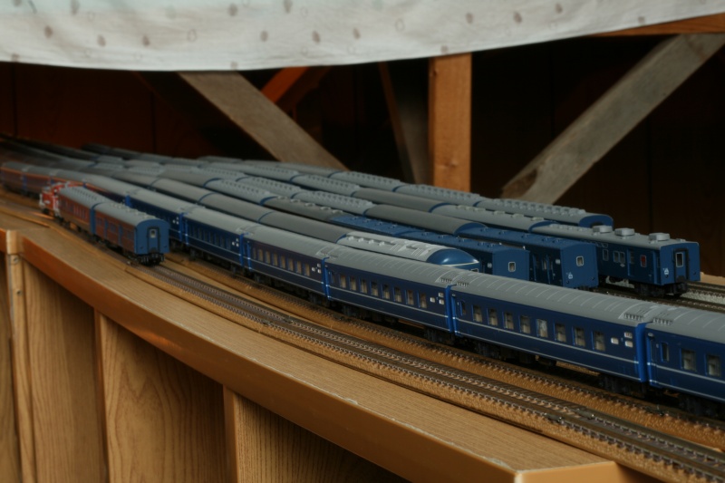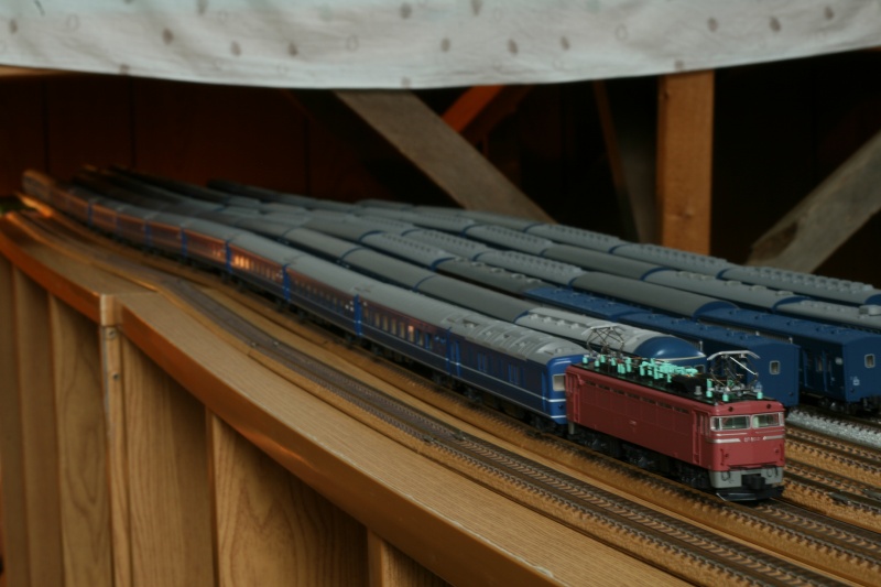 そういえば客車を並べたのに尾久ごっこ(^^;)をしていなかったなあと思い、機関車をどけて客車だけの一枚をパチリ。