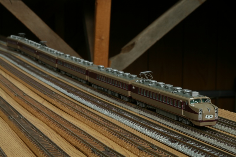 実車の489系のあさまは9連なのですが、フル編成を集めようと思う前に模型のほうがHG化のあおりで生産中止になってしまい……。どうにか中古ショップでモハ489、すなわちパンタなしモハは手に入れたのですが、パンタ付きのモハ489がどうにも見つかりません。見つけても程度が悪かったりモーターが入っていたりで、結局この写真も8両で撮っています。
