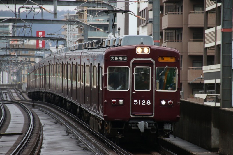 宝塚線の撮影もしたことなかったので、これも雨で屋根があるのが決め手となり、岡町駅で撮影。5100系も、能勢電鉄のものを除くと初撮影でした。