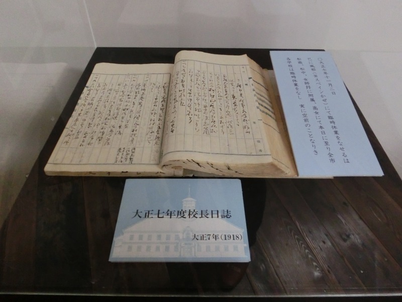 スペイン風邪で休校の時の校長の日記。インフルエンザとかも当時から名前として知られていたようで、ちょくちょく「何人休んだ」とか書いてありました。