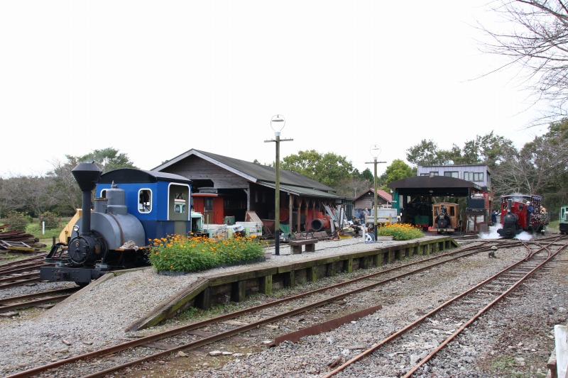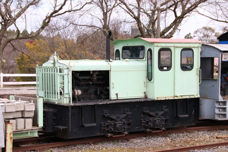 3両ある酒井工作所製のディーゼル機(101~103号のいずれかです)、立山砂防軌道で使われていたもので、普段はこの機関車が園内を走行しますが、この日の主役は蒸気機関車で、今日はお休みです。