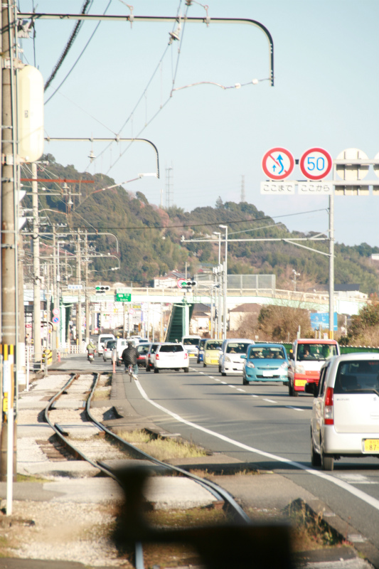 伊野線はガードレールもないこんな幹線道路沿いを走ります。道路や民家を掠めながら進む併用軌道を単線で結び、途中の交換駅ではタブレット交換の様子も見ることができます。