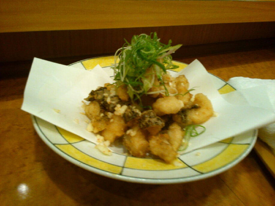 さらにこちらはウツボのから揚げ。食材としてはあまりメジャーではない魚ですが、中国四国地方ではわりに食べられている魚のようで。白身魚のフライをあぶらっぽくしたような料理でしょうか。お酒に大変よく合いました。ごちそうさまでした。