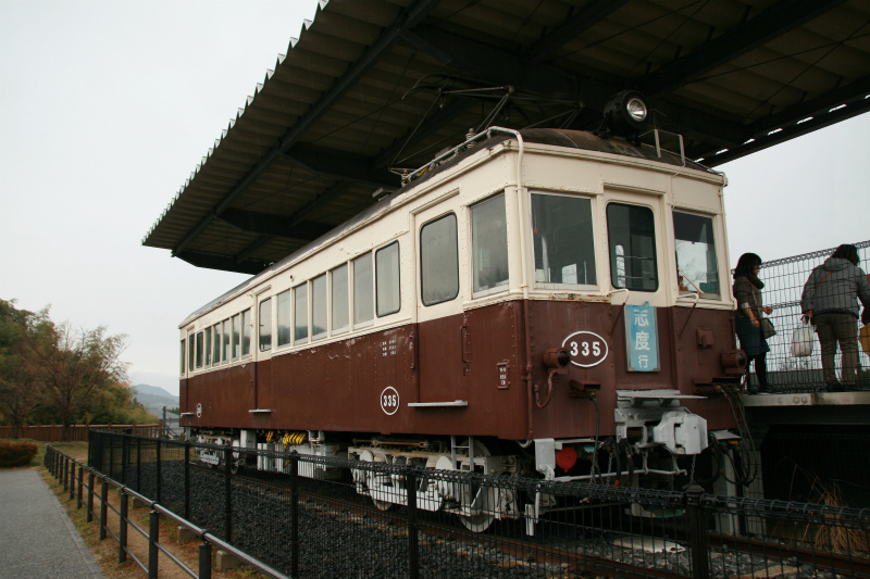 仏生山で300号を見れなかった腹いせに、志度線沿線で保存されている335号を見学。屋根付きで大切に保存されていました。中にも自由には入れて、しかも状態がいいというのも、きちんと管理がされている証だと思いました。