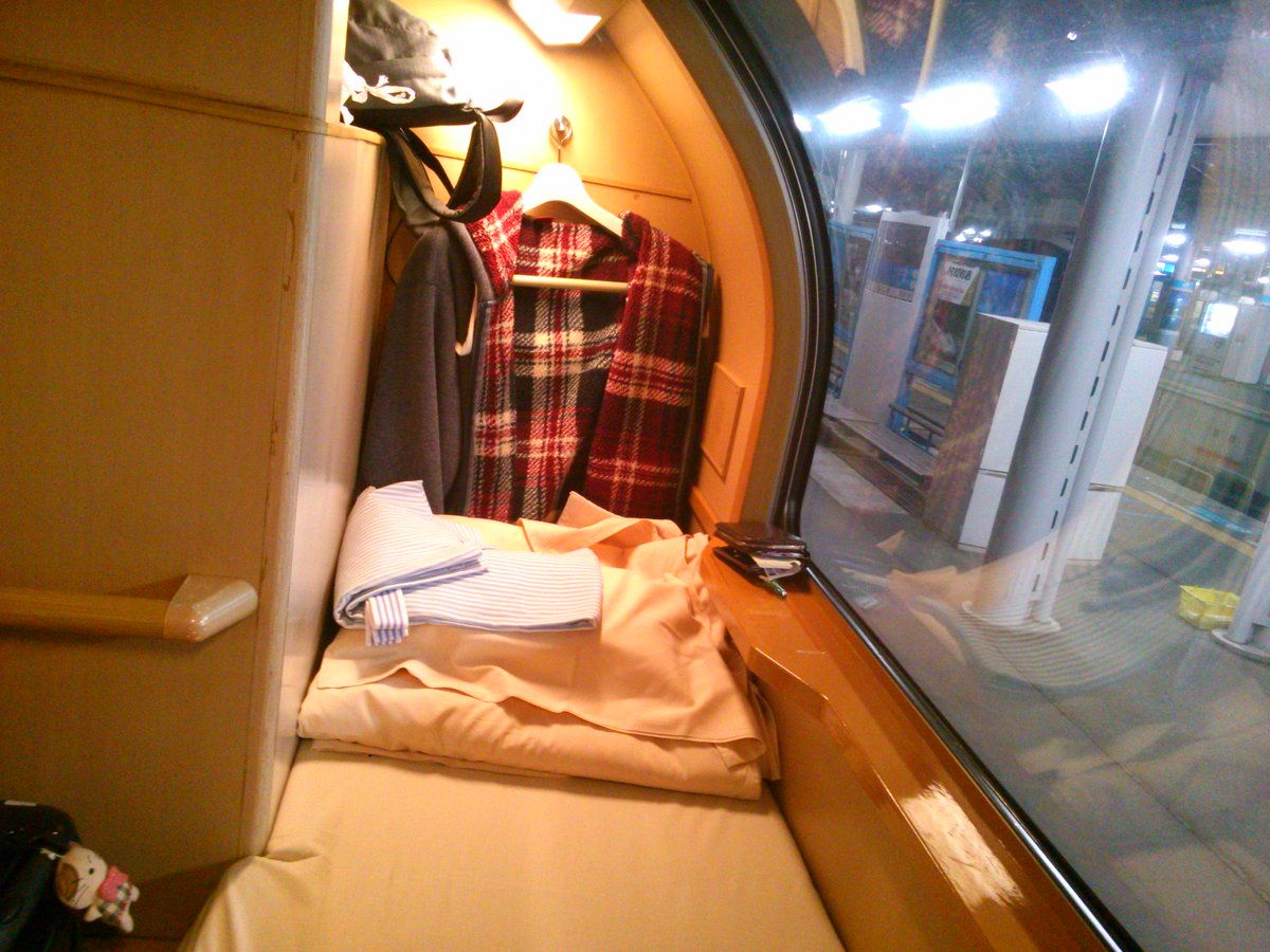 あけぼのソロも十分に快適だったのですが、ベッドはサンライズの方が広いですね。収納スペースもサンライズの勝ちです。まあ、当たり前と言えば当たり前ですが。