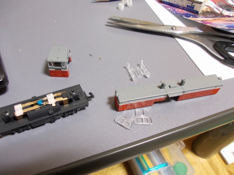 ここまで加工するとデッキも付けてやりたくなりますが、カプラーの処理が面倒そうなので、大人しく握り棒くらいにとどめておくことにしようと思います。確かEF58の補修用でストックしてある握り棒がありますから、それが使えるはず。。。