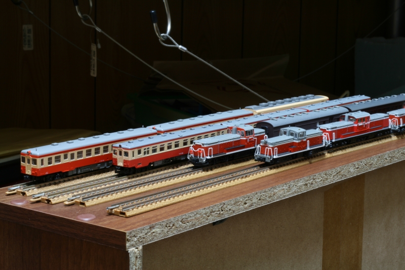 上の画像のほかにもKATOのキハ58が12両もあったり、KATOのキハ40やキハ20があったりするなど、小さなスペースのレイアウトがほしくなるくらいには増えています。茶色い客車も増えましたしね。
