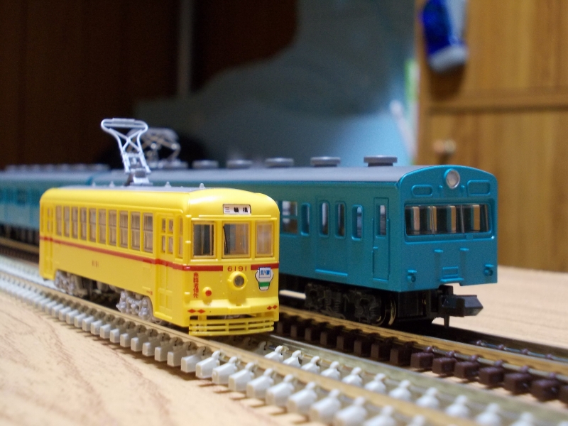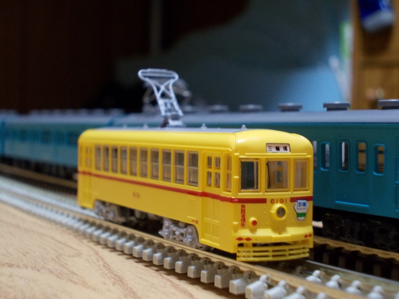上の103系を購入したお店で色々物色していたときに、ふと陳列棚の中に無造作に積まれていたのをついつい手にとってしまったのが運の尽き、そのまま買い物かごに投げ入れてしまいました。ご存知鉄コレの都電の6000形です。