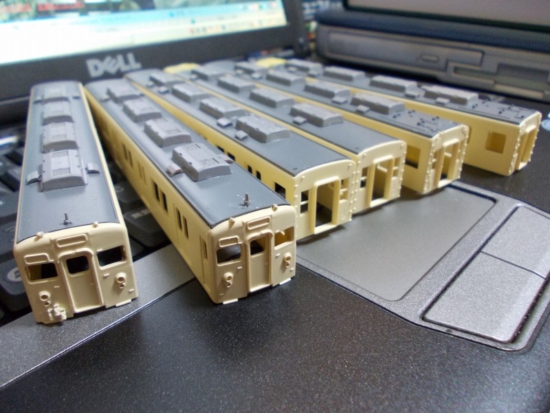 まあとにかく、色々と思い入れのある電車だったりします。本当は4+2の編成がよかったのですが、どうやら2連は在庫切れだったらしく、6両貫通編成を組むことにしました。塗るのはセイジクリームですが、冷房つきの編成になりますね。