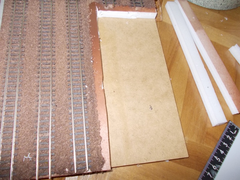 まず、以前の記事で車庫が仮置きされている場所をくりぬきます。くりぬく作業は基礎を発泡スチロールで作っていますから簡単です。