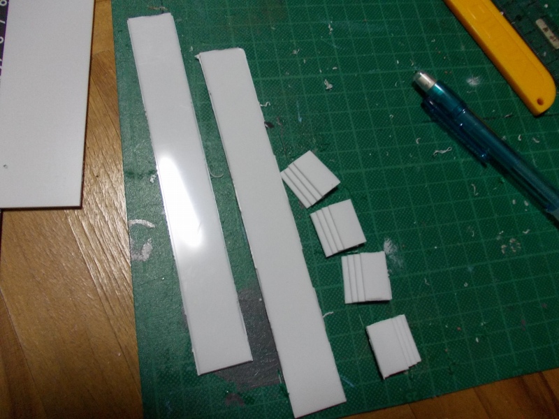 板状のものが、家にあった1.2mm厚のプラ板を二枚重ねたものと、同じく1.2mmのプラ板を階段状に4段重ねたものを作りました。
