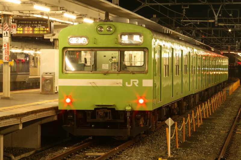 ここではわざわざ普通電車(=103系)の大阪行きを選び、しばしMT54モーターの音を堪能します。コンプレッサーが新しくなっていたのか、この時代の車両でよく聞いた「ドドドドドド」という音が聞けなかったのは残念でしたが、昔の面影を残す103系は大変おいしゅうございました。