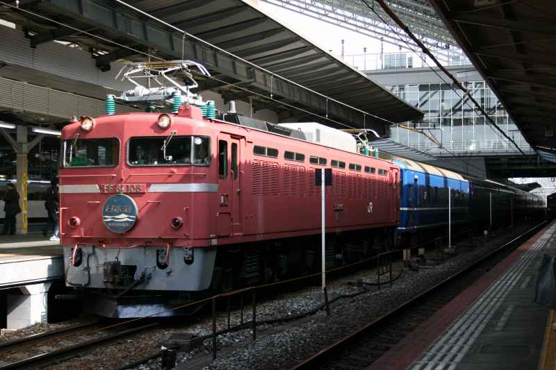 挨拶もそこそこに、それぞれが撮影できる場所にいそいそと散っていきます。私は対岸の環状線ホームから、おそらくは人生で初めてとなるローズピンクのEF81が大阪駅に入線してきました。