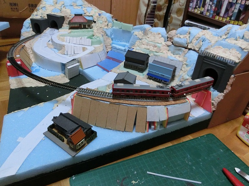 レイアウトづくりも終盤戦に差し掛かろうとしています。やはり当初のコンセプト「製作方法はなるべく簡単に、積極的に先達の技法は真似する」は正しかったw はじめてレイアウトとして遊べるくらいには完成しそうです。