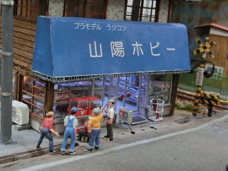 極めつけはこの模型屋でしょう。中の模型棚に入っている箱まで分かるように表現されているのは、発想と技術と根気の3つが高いレベルで発揮されている証ですね。
