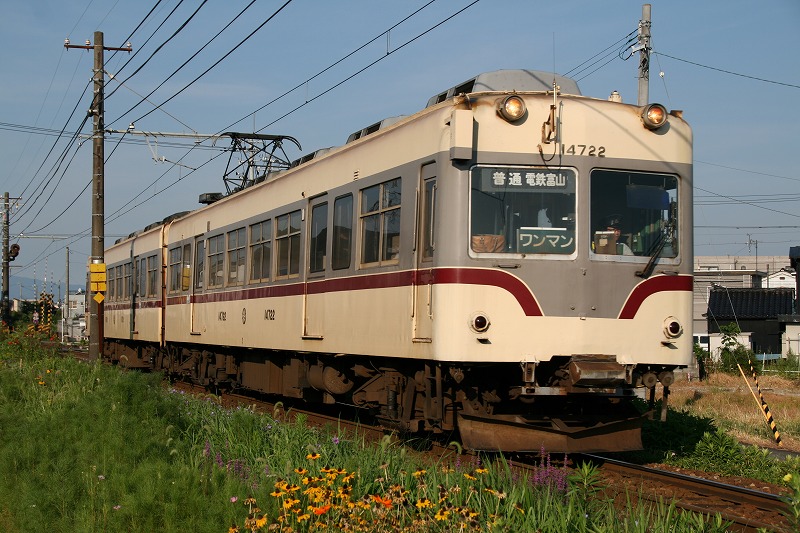 さて、高岡駅を朝早くに出発したり理由は、3両編成を確実に抑えるため。日中は完全に2両編成と共通運用、それも車庫で昼寝することも多いようで、どこで出会えるか、はたまたそもそも出会えるのかは運しだい。それに対して、不二越・上滝線の早朝ラッシュ時は必ず3両編成が運用されるので、ここで確実に抑えておきたい電車がありました。