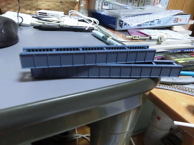 この橋脚にはオプションとしてかさ上げ用の延長橋台もリリースされているのですが、とりあえずはスチロール製の簡易的なものでお茶を濁す予定です。川を作る時にもう一度これでいいか考えたいと思います。