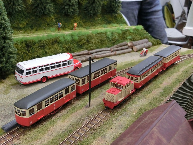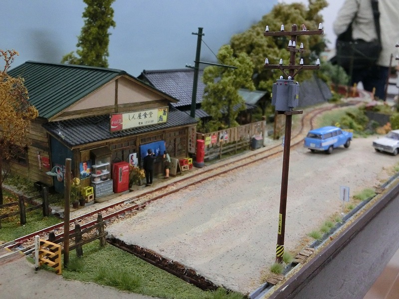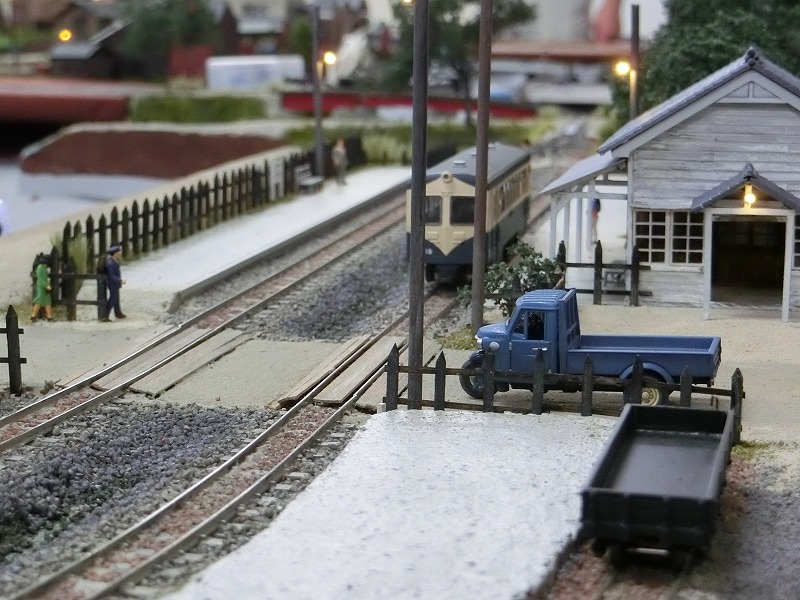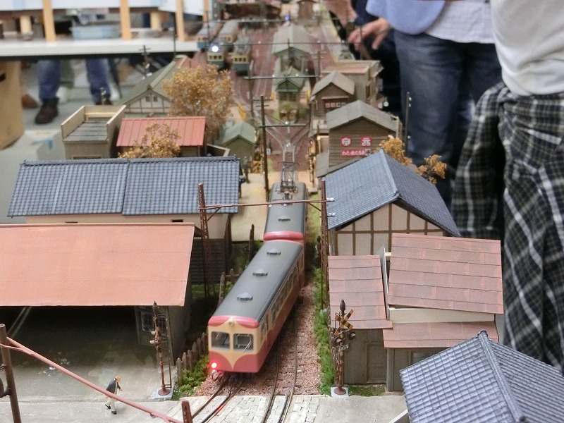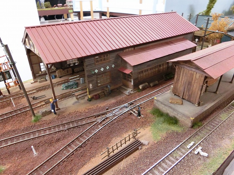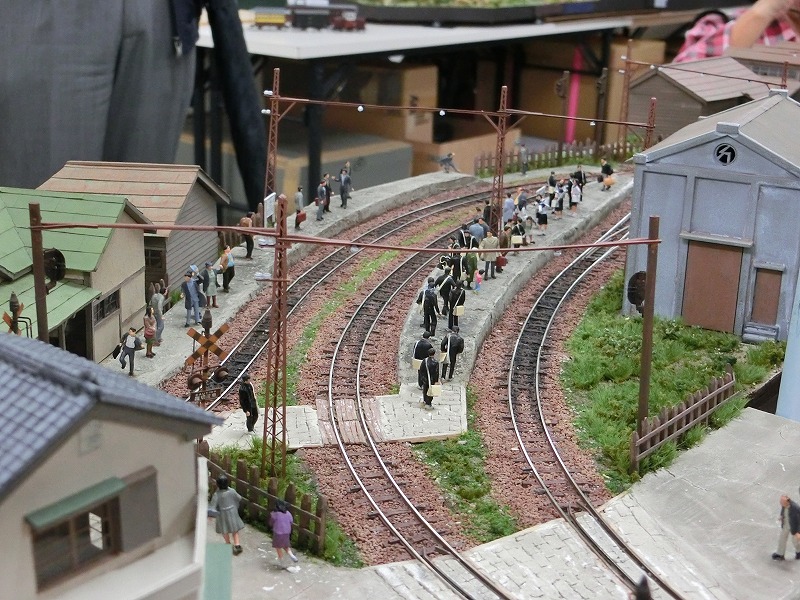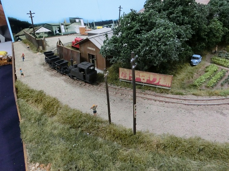 企業ブースより、モデルワーゲンの新作ジオラマ。ネット上で製作記が公開されており、更新を楽しみにしていました。わかる人にはすぐにわかる、尾小屋鉄道尾小屋駅。バスも発着する砂利の表現が巧みですね。