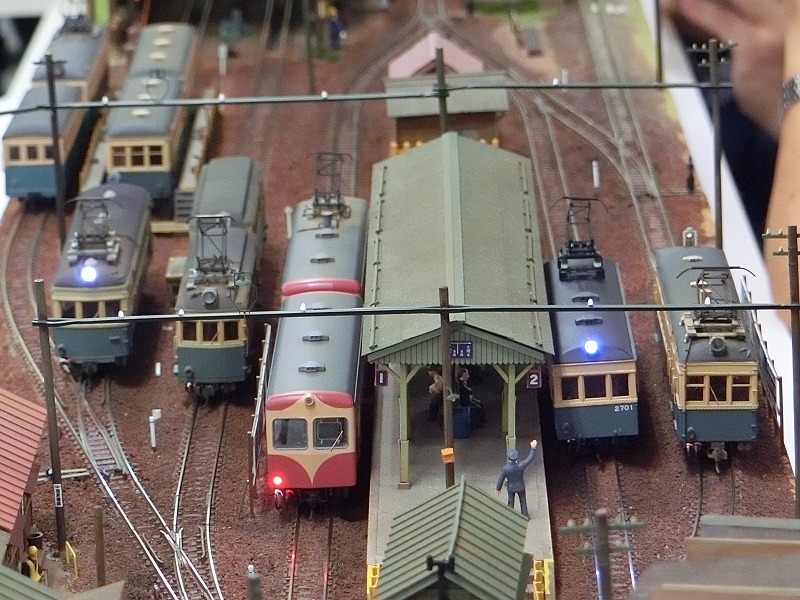 まずは今回一番の目的であった下北南部電鉄(架空鉄道の設定(レギュレーション)を用いて、入選車両や情景に縛りを加えてモジュールと車両を楽しむグループ)です。5年前だったかに、まだ目黒のさつき会館で開催していたころでしたが、存在は知っていたものの始めて実見して衝撃を受けた作品群です。そのときは縮小版で、全貌を見ることはできなかったのですが、今回はほぼ主要なモジュールが勢ぞろいということで、ため息をつくばかりでした。私の感想なぞしゃべってもしょうがないので、とりあえず画像をご覧くださいまし。